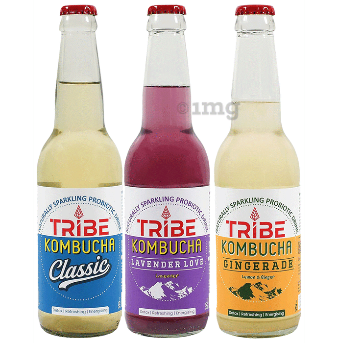 Tribe Kombucha Combo Pack of Naturally Sparkling Probiotic Drink Classic, Gingerade & Lavender Love (330ml Each)