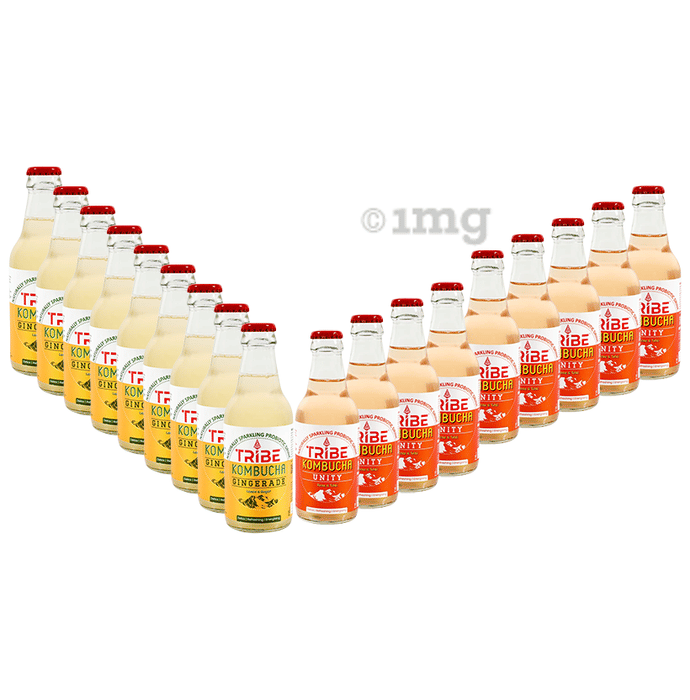 This pack includes two refreshing varieties: gingerade and unity, each crafted to perfection with the finest ingredients. Whether you're a kombucha connoisseur or new to the trend, this combo pack is the perfect way to experience the probiotic goodness of Tribe Kombucha. Elevate your wellness routine with every sip!