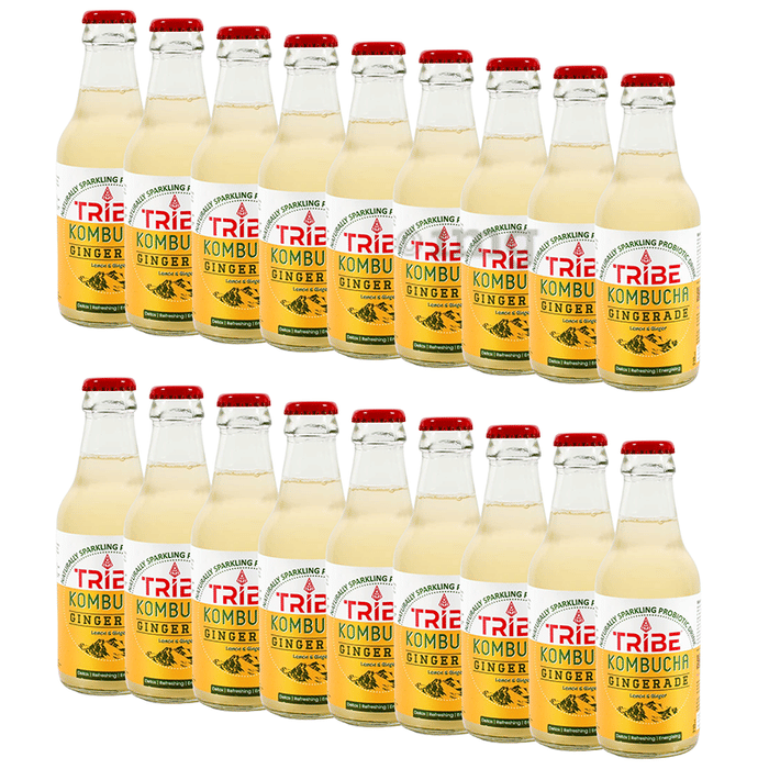 Tribe Kombucha Combo Pack of Naturally Sparkling Probiotic Drink Gingerade (210ml Each) Lemon and Ginger