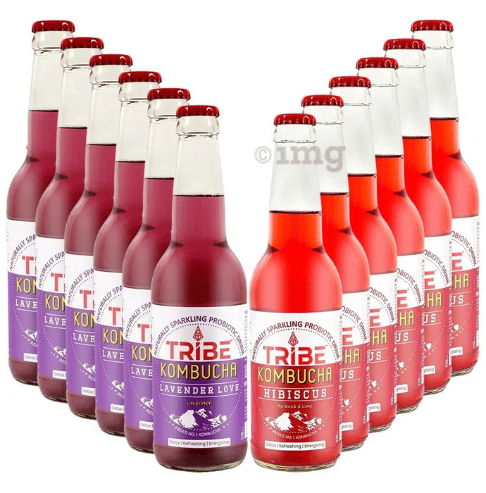 Tribe Kombucha Combo Pack of Naturally Sparkling Probiotic Drink Hibiscus & Lavender 330ml Each