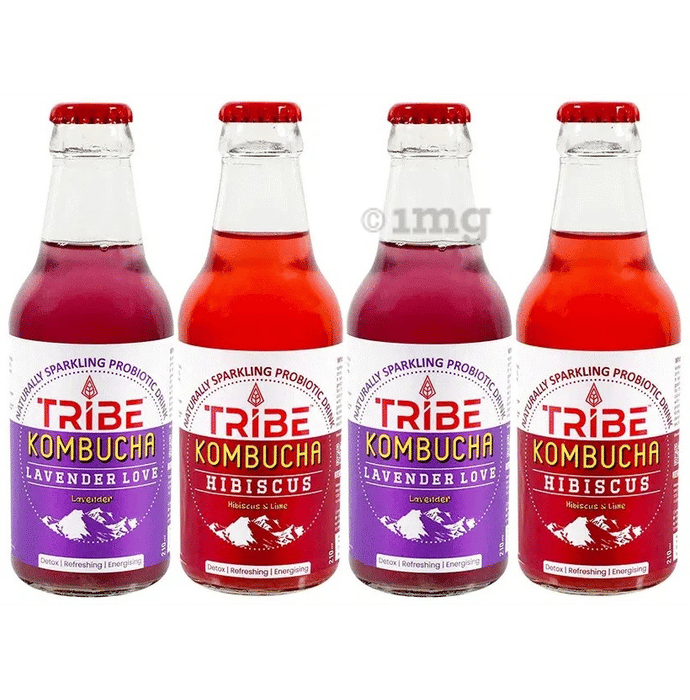 Tribe Kombucha Combo Pack of Naturally Sparkling Probiotic Drink Hibiscus,Lemon,Blue Pea Flower & Lavender (210ml Each)