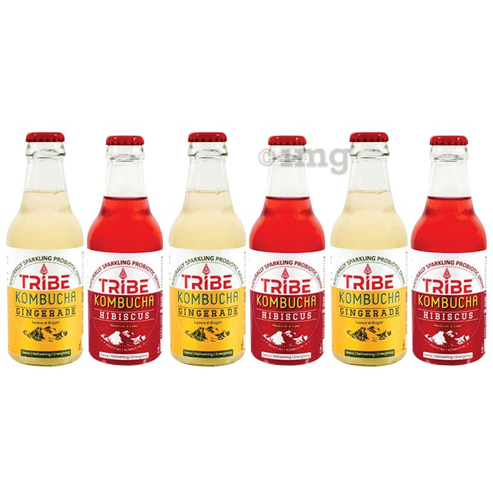 Information about Tribe Kombucha Combo Pack of Naturally Sparkling Probiotic Drink Lemon & Ginger and Hibiscus & Lime (210ml Each)