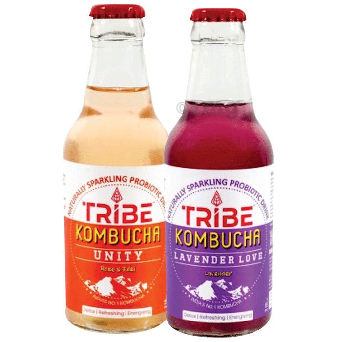 Tribe Kombucha Combo Pack of Naturally Sparkling Probiotic Drink Rose & Tulsi and Lavender (210ml Each)
