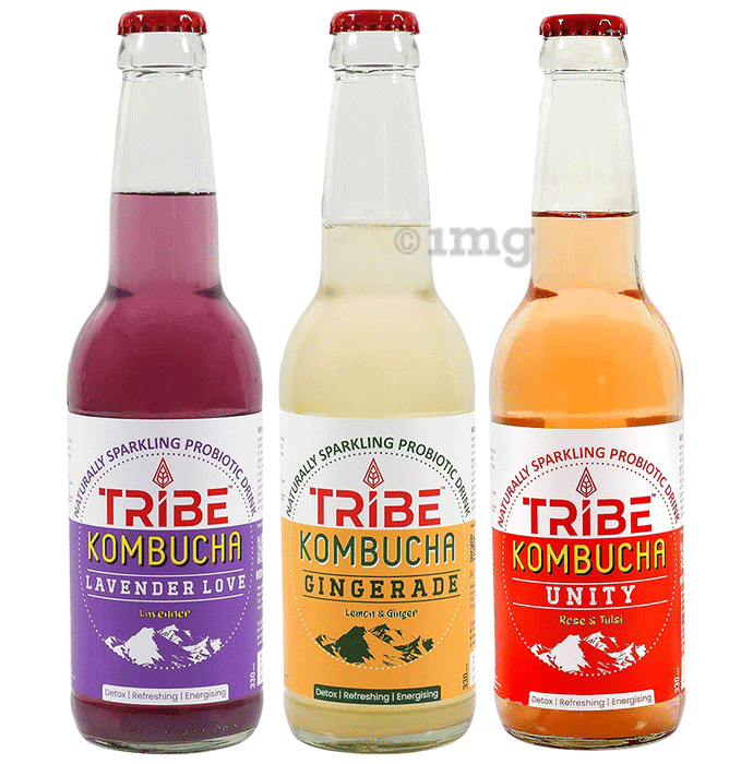 Information about Tribe Kombucha Combo Pack of Naturally Sparkling Probiotic Drink Unity, Lavender Love & Gingerade (330ml Each)