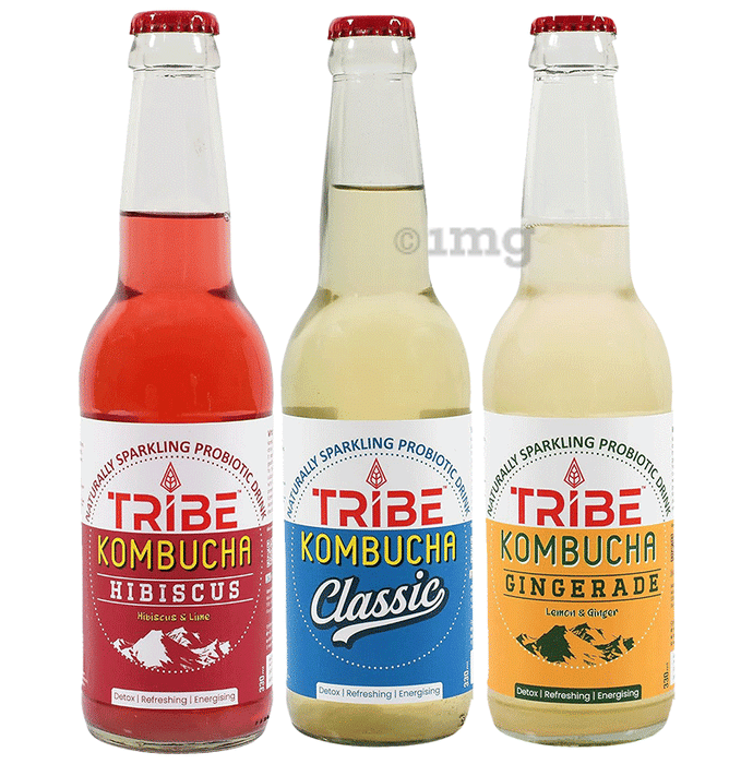 Information about Tribe Kombucha Combo Pack of Naturally Sparkling Probiotics Drink Classic, Gingerade & Hibiscus (330ml Each)