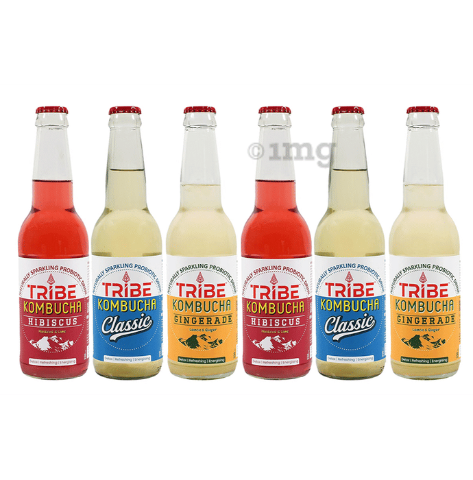 Tribe Kombucha Combo Pack of Naturally Sparkling Probiotics Drink Classic, Gingerade & Hibiscus (330ml Each)