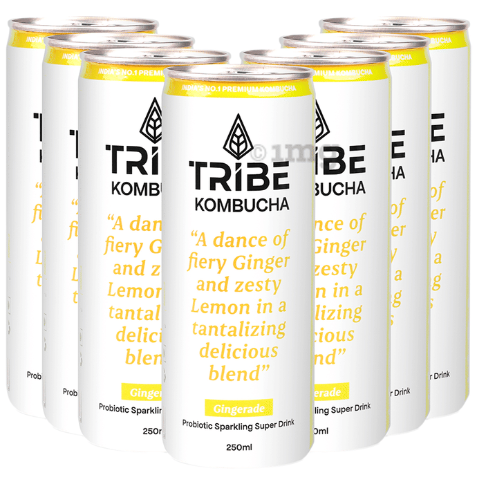 Tribe Kombucha Probiotic Sparkling Super Drink (250ml Each) Gingerade is a refreshing blend crafted with the perfect balance of zesty ginger and tangy lemon. It is a fermented probiotic drink loaded with antioxidants, probiotics, and good bacteria. Tribe Kombucha may help refresh your mind, detoxify your gut and energise your body. Made with care, this Gingerade is a delightful twist on traditional kombucha, helping offer a flavorful experience with the goodness of ginger and the refreshing citrus kick of lemon in every sip.