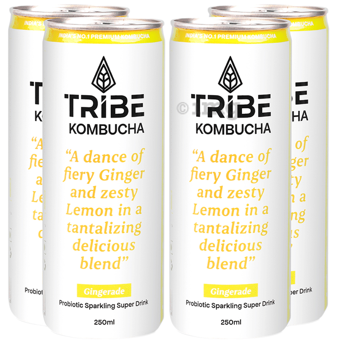 Tribe Kombucha Probiotic Sparkling Super Drink (250ml Each) Gingerade is a refreshing blend crafted with the perfect balance of zesty ginger and tangy lemon. It is a fermented probiotic drink loaded with antioxidants, probiotics, and good bacteria. Tribe Kombucha may help refresh your mind, detoxify your gut and energise your body. Made with care, this Gingerade is a delightful twist on traditional kombucha, helping offer a flavorful experience with the goodness of ginger and the refreshing citrus kick of lemon in every sip.