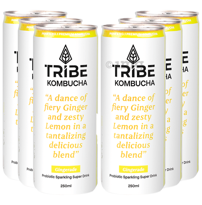 Tribe Kombucha Probiotic Sparkling Super Drink (250ml Each) Gingerade is a refreshing blend crafted with the perfect balance of zesty ginger and tangy lemon. It is a fermented probiotic drink loaded with antioxidants, probiotics, and good bacteria. Tribe Kombucha may help refresh your mind, detoxify your gut and energise your body. Made with care, this Gingerade is a delightful twist on traditional kombucha, helping offer a flavorful experience with the goodness of ginger and the refreshing citrus kick of lemon in every sip.