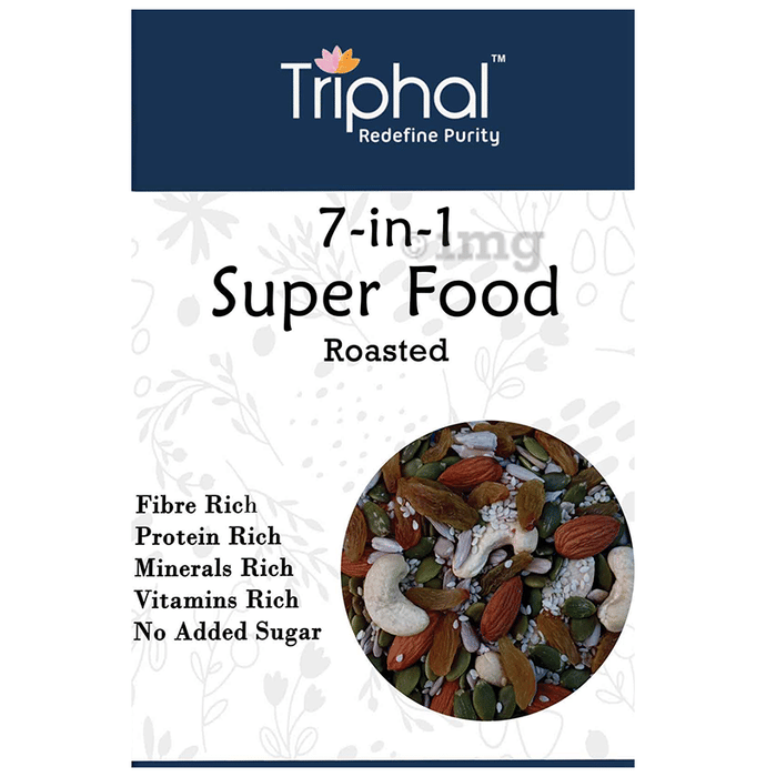 Triphal 7 in 1 Roasted Super Food are an antioxidant rich mix that helps enhance overall health. It is rich in omega-3 fatty acids and other vital nutrients that help enhance skin health and boosts immunity.