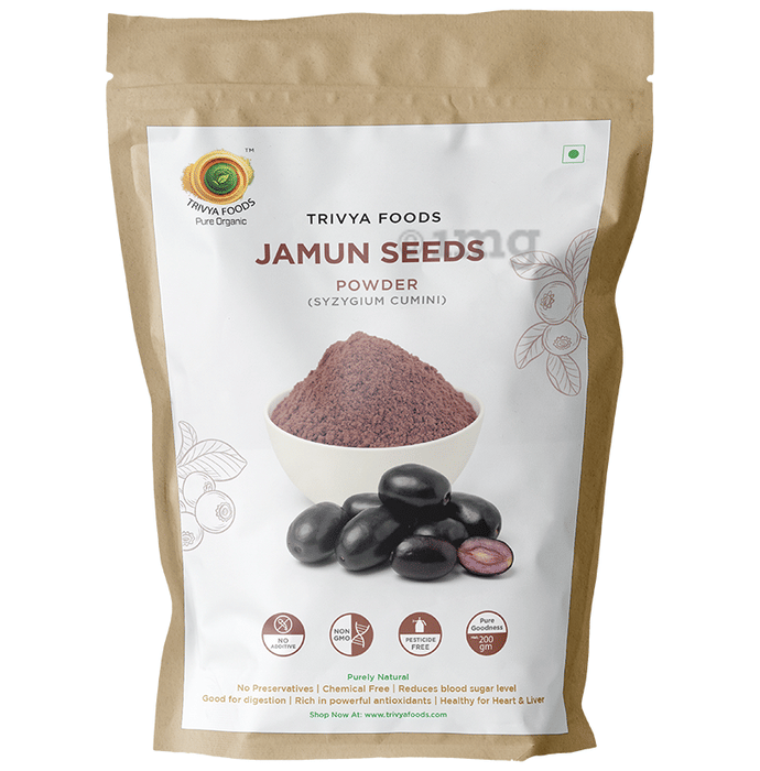 Trivya Foods Jamun Seed Powder is a herbal supplement prepared from jamun seeds. It is a natural source of essential vitamins, minerals, and antioxidants that can help support overall health. The powder is formulated to assist in maintaining healthy metabolism, managing sugar balance, and supporting digestion. Its antioxidant profile can help in protecting cells from oxidative stress while contributing to liver and heart wellness.