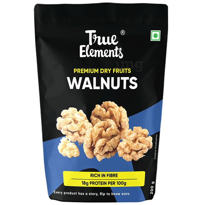 True Elements Premium Dry Fruits Walnuts are naturally sourced, nutrient-dense superfoods ideal for improving overall health. These walnuts are free from artificial colours, flavours, and preservatives, making them a clean and wholesome addition to your diet. Known for their crunchy texture and rich nutritional profile, they are packed with essential fatty acids, dietary fibre, and protein, providing numerous health benefits. Whether consumed as a snack or incorporated into meals, these walnuts are a guilt-free indulgence for healthy eating.