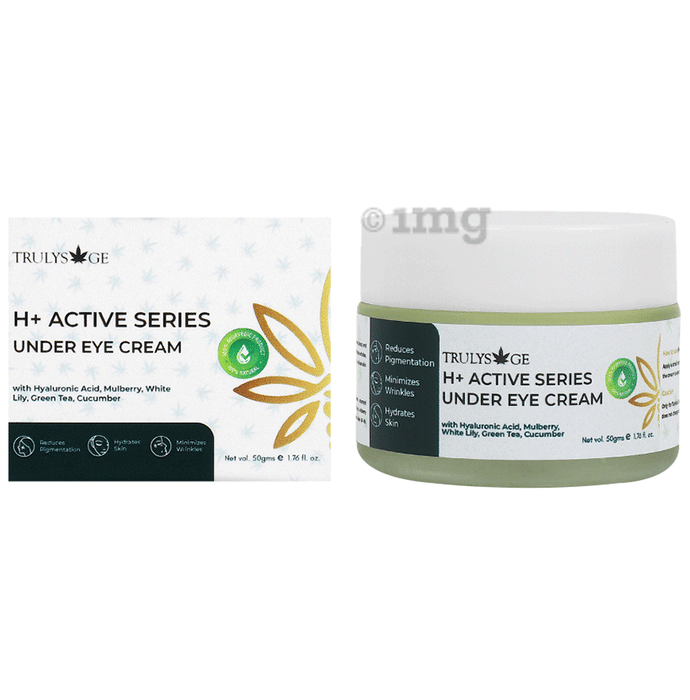 Trulysage H+ Active Series Under Eye Cream is enriched with Hyaluronic Acid, Mulberry, White Lily, and Cucumber to help reduce dark circles, puffiness, and fine lines. Its hydrating formula supports a refreshed and smoother appearance, making it suitable for all skin types.