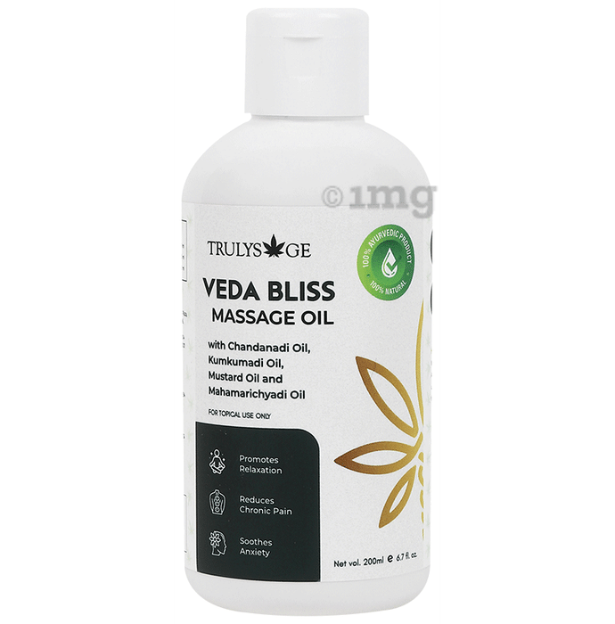 Trulysage Veda Bliss Massage Oil is a deeply nourishing Ayurvedic blend enriched with Chandanadi Oil, Hemp Seed Oil, Kumkumadi Oil, Mahamarichyadi Oil, and natural carriers like Sesame and Soya Bean Oil. Designed to help soothe tired muscles, support relaxation, and maintain skin wellness, this oil is ideal for stress relief and rejuvenation. It may help ease muscle tension, support relaxation, and provide a calming experience for both body and mind.