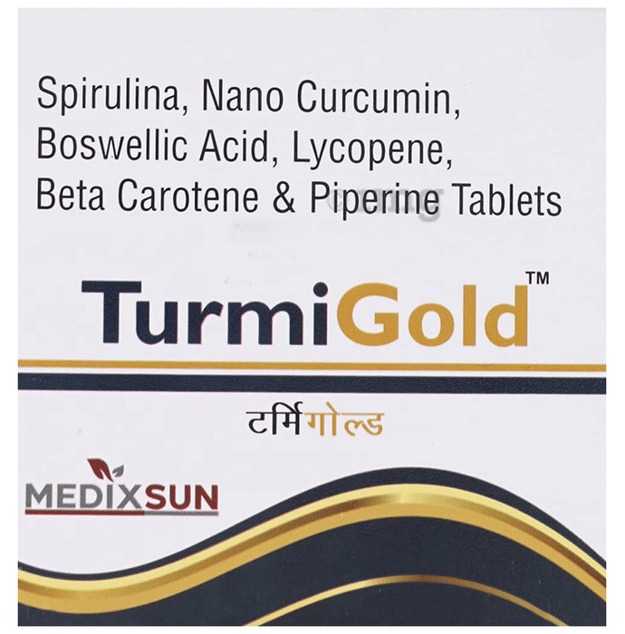 TurmiGold Tablet is a nutritional supplement combining ingredients such as Nano Curcumin, Lycopene, Boswellic Acid, Spirulina, and Piperine. The formulation is designed to help support joint and bone health through its blend of botanicals and antioxidants. Piperine is included to help assist in nutrient absorption. This vegetarian tablet format is suitable for regular use in adults seeking to help support their structural wellness and mobility as part of an active lifestyle.