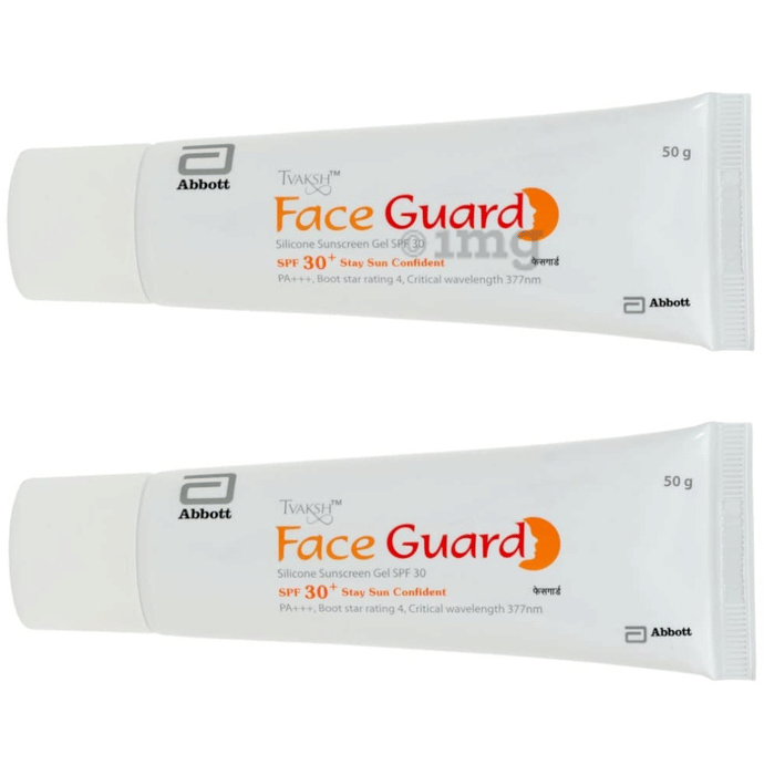 Tvaksh Face Guard Silicone Sunscreen is a broad spectrum sunscreen that protects the skin against UVA and UVB rays by providing physical and chemical barrier to sunlight. Tvaksh Face Guard gel is a non-comedogenic which protects your skin from harmful rays.
