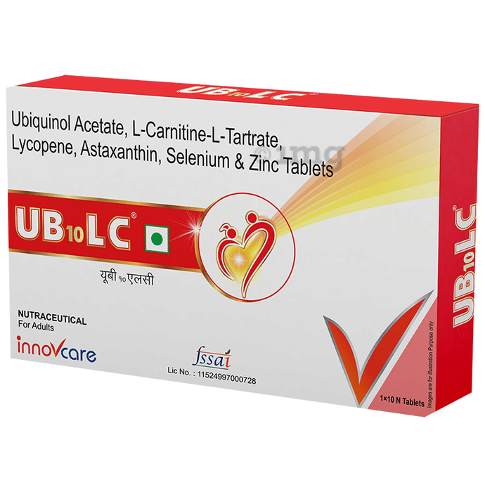 UB10 LC Tablet is a thoughtfully formulated dietary supplement designed to help support male vitality, cellular energy, and antioxidant defense. Enriched with L-Carnitine L-Tartrate, Ubiquinol Acetate, and a potent blend of antioxidants like Astaxanthin and Lycopene, this formulation works at the cellular level and can help aid energy metabolism and protect against oxidative stress. Key trace elements such as Zinc and Selenium may help maintain physiological balance and support overall male wellness.
