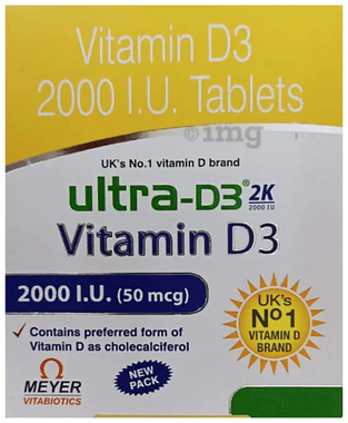 Ultra 2K Tablet Ultra-D3 2K Tablet is a nutritional supplement that contains Cholecalciferol (Vitamin D3) as its active ingredient. Vitamin D3 is a fat-soluble vitamin that plays a crucial role in maintaining healthy bones and teeth. It helps the body absorb and utilize calcium and phosphorus, which are essential for bone health. Key Ingredients: Vitamin D3 I.P (As stabilised) 20000 I.U (50 mcg),Excipients Key Benefits: