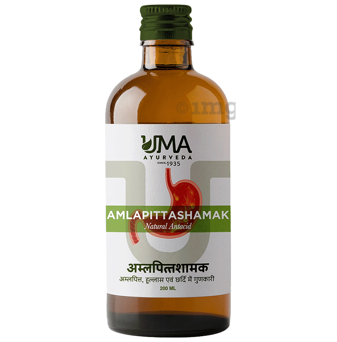 Uma Ayurveda Amlapittashamak Syrup is made up of natural herbs like amla, giloy, chhoti elaichi among others. Composition is heavy metal-free. It can help relieve acidity by neutralizing excess acid secretion. It can help regulate normal acid secretion. It may help relieve burning sensation in chest and stomach, belching and improve digestion. It can be helpful in Amlapitta (Hyperacidity), Utklesh (Nausea), Vaman (Vomiting). Acts fast and is safe for long term usage.