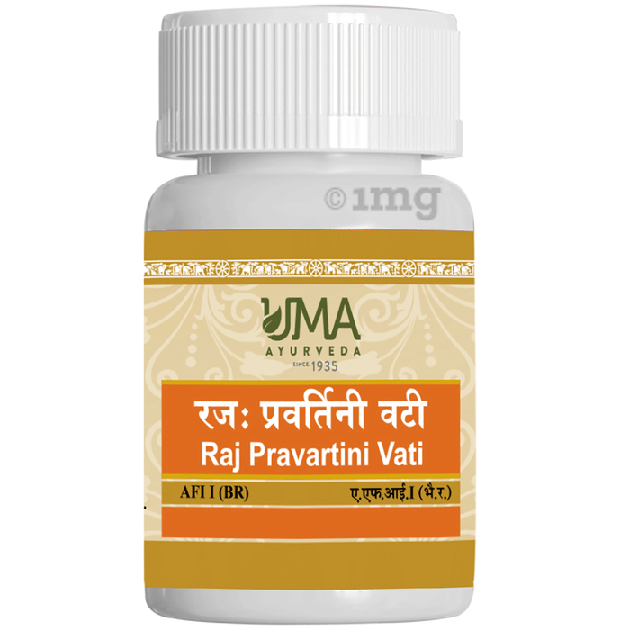Uma Ayurveda Raj Pravartini Vati is an Ayurvedic formulation that may help manage physiological imbalances and support regular body functions. It contains ingredients such as Shuddha Suhaga, Hing, Shuddha Kasis, Musabbar, and is processed with Ghee Kumari, which together may help support internal cleansing and maintain routine wellness in women.