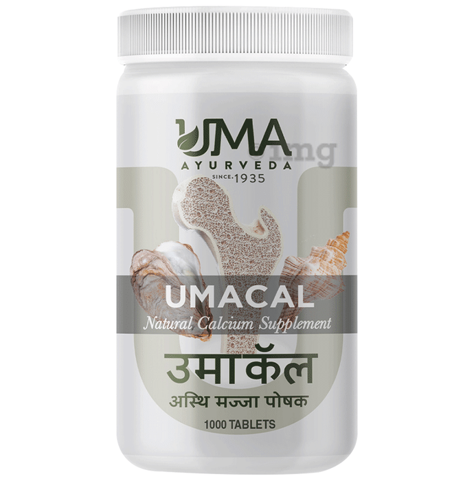 Uma Ayurveda Umacal Tablet is an Ayurvedic formulation enriched with a blend of natural calcium sources and supportive herbs that may help support bone strength and joint health. This supplement combines ingredients like Muktashukti Bhasma, Shankh Bhasma, and Kukkutandatwak Bhasma, with bioavailable calcium content, along with Mulethi, Vanshlochan, and Ela that may aid absorption and holistic wellness. Designed to help support healthy bone mineralization, Umacal Tablet can be beneficial for those experiencing calcium deficiency, joint pain, or age-related bone degeneration.