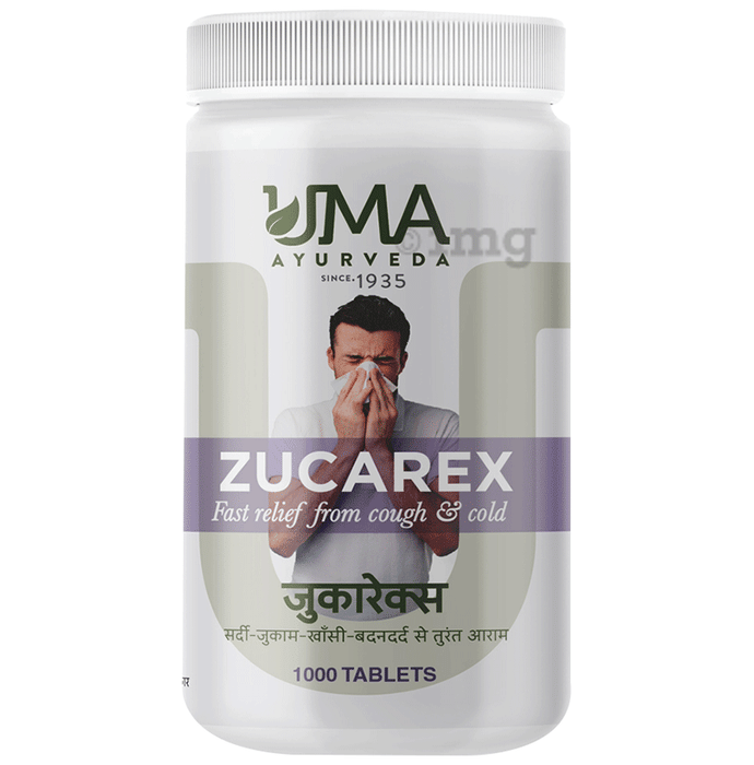 Uma Ayurveda Zucarex Tablet is an Ayurvedic formulation that may provide natural relief from common respiratory discomforts like cough, cold, sore throat, and nasal congestion. This herbal remedy combines ingredients such as Tulsi, Shunthi, Godanti Bhasma, and Chitrak, which contain expectorant, anti-inflammatory, and antimicrobial properties. Zucarex may help soothe irritated airways, reduce throat inflammation, and support easy breathing. Ideal for seasonal wellness, it may support a healthy respiratory system while aiding the body's natural immunity against infections.
