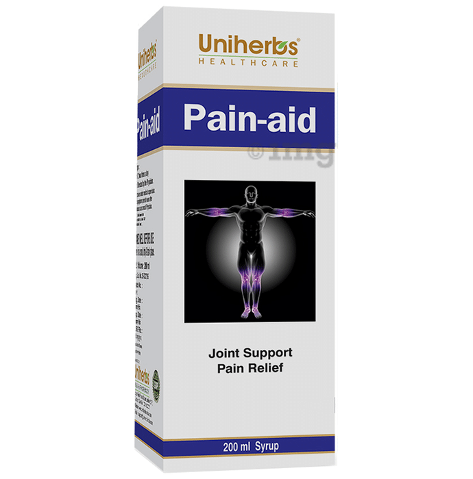 Uniherbs Pain-Aid Syrup Sugar Free is loaded with analgesic and anti-inflammatory herbal extracts for instant pain relief. Rasna is known for its analgesic and antipyretic properties. Sallai Guggul helps promote healthy bone and joint movement. Ashwagandha has anti-inflammatory properties, and Arandi may provide relief from joint discomfort.