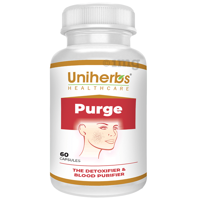 Uniherbs Purge Capsule is anti-infective, antifungal and it supports healing of fungal infections, especially of the skin, including acne.It also works as blood purifier and detoxifier.Neem, Manjistha, Sandal Lal, Gorakhmundi, Vidang, Triphala, Goggal all these natural ingredients are included to provide best results.