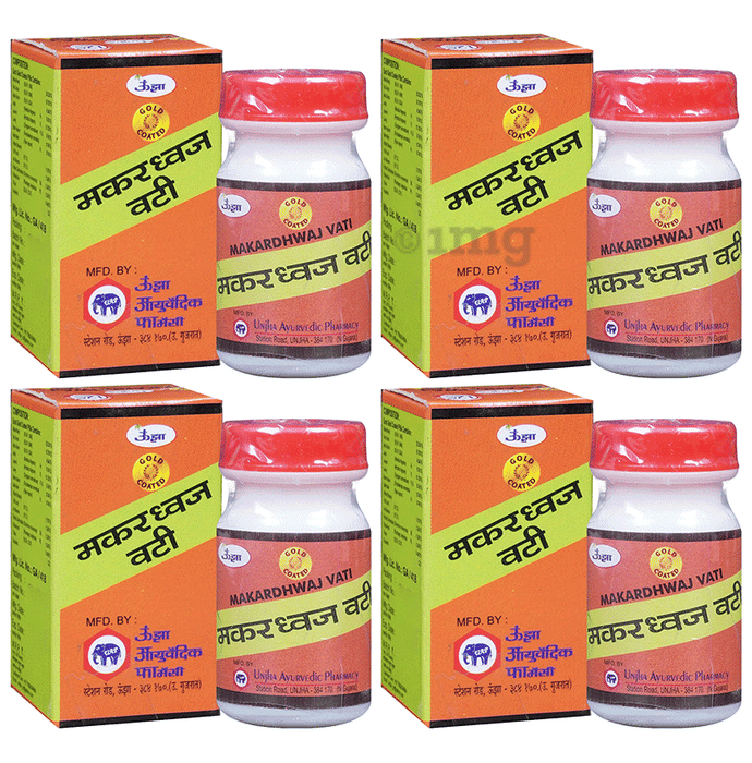 - Unjha Makardhwaj Vati (Gold Coated) contains aphrodisiac herbs and minerals