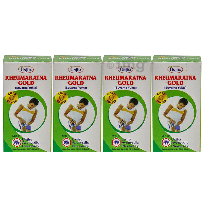 Unjha Rheumaratna Gold (Gold Coated) contains analgesic, non-steroidal, and anti-inflammatory properties. The ingredients present in the product provide support for bones and joints and may help to improve the immunity level of the body.
