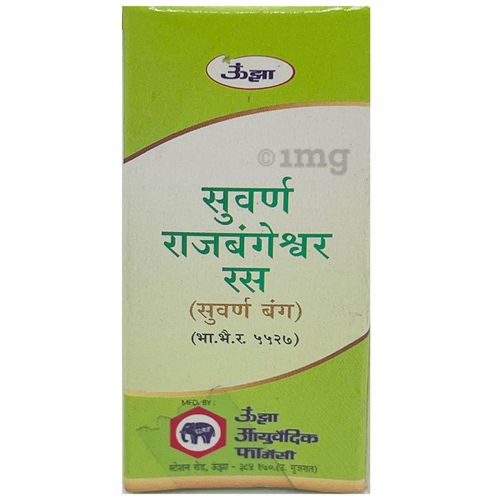 Unjha Suvarna Rajbangehswar Rasa is a blend of natural ingredients that may help in boosting sexual health in men. It is beneficial in situations like overall debility and helps increase strength and vitality. It promotes proper blood flow to the reproductive organs and relaxes the muscles