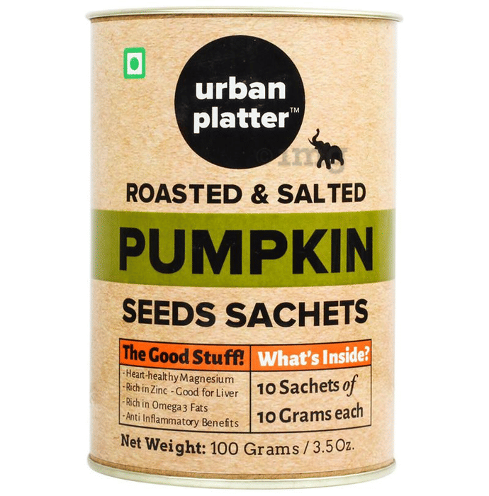 Urban Platter Roasted And Salted Pumpkin Seeds Sachets (10gm Each) is a sachet of tasty pumpkin seeds which are filled with fibres and thus, help to improve gut health. Pumpkin seeds are rich in magnesium which keeps the heart healthy and contains zinc which is good for the liver. It is also helpful for inflammation due to its anti-inflammatory property