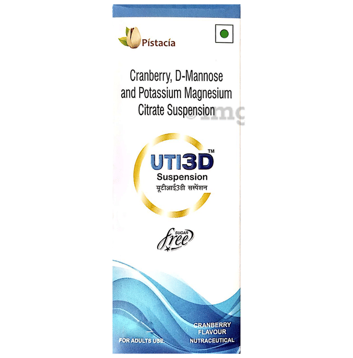 UTI3D Oral Suspension Cranberry Sugar-Free belongs to the class of dietary supplements used to prevent urinary tract infections (UTIs). Urinary tract infection is the most common infection in humans caused by microbes and can occur in any part of the urinary tract such as the bladder, urethra, kidneys, or ureters.