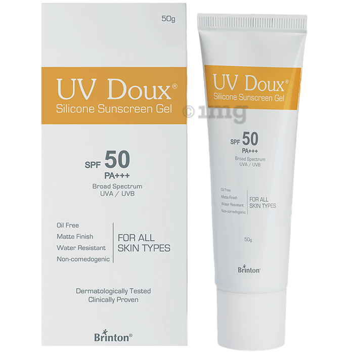Information about UV Doux Silicone Sunscreen Gel SPF 50 PA+++ | Oil-Free, Matte Finish & Water-Resistant with Free Face Cleanser
