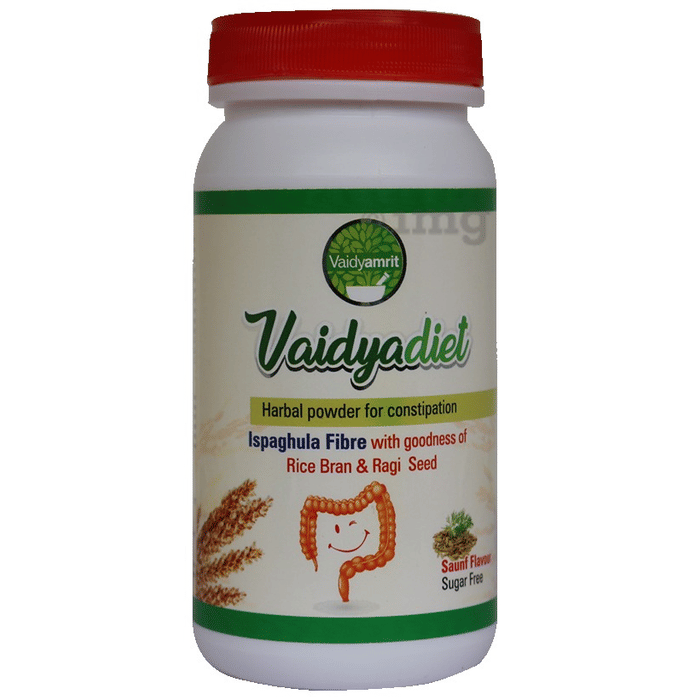 Vaidyamrit Vaidyadiet Powder is a herbal powder that may support intestinal health. It is available in powder form which helps in the absorption of more water and fibre in the intestine. Side effects that may be seen on excess use are discomfort in the abdomen area, distension in the abdomen and diarrhoea.