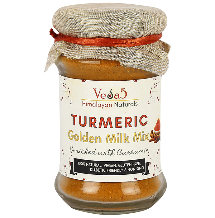 Veda5 Turmeric Golden Milk Mix PowderTurmeric is claimed to be one of the most potent and powerful spices used in Indian cooking, as well as a storehouse of healthy properties. Besides being used as a spice, it is also the primary base ingredient in the making of Haldi doodh or golden milk, a desi homemade energy drink and home remedy for almost all possible ailments.