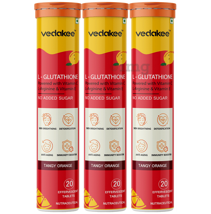 Vedakee L-Glutathione Effervescent Tablet (20 Each) Tangy Orange No Added Sugar