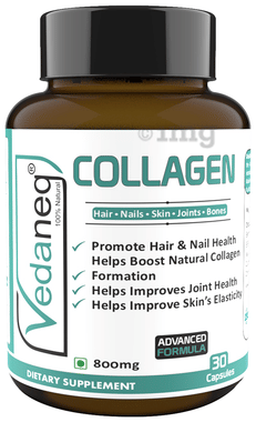 VedaneQ Collagen Capsule contain biotin and Vitamin C which support the formation of natural collagen formation. Collagen is known for its anti-ageing properties.It has Vitamin C that helps maintain healthy skin.