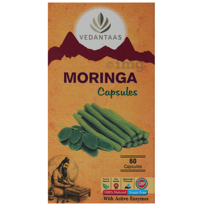 VEDANTAAS Moringa Capsules is an Ayurvedic capsule with drumstick tree leaf powder with antioxidant properties. It helps maintain heart, brain and digestive health.