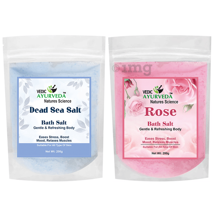 Vedic Ayurveda Combo Pack of Dead Sea Salt & Rose Bath Salt (200gm Each) for All Skin Types