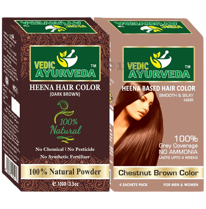 Vedic Ayurveda Combo Pack of Heena Hair Colour Dark Brown (100gm Each) and Heena Based Hair Colour Smooth and Silky Hair (4 Sachet Each)