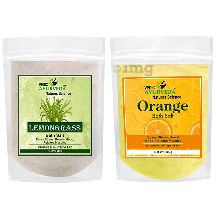 Vedic Ayurveda Combo Pack of Lemongrass & Orange Bath Salt (200gm Each) for All Skin Types