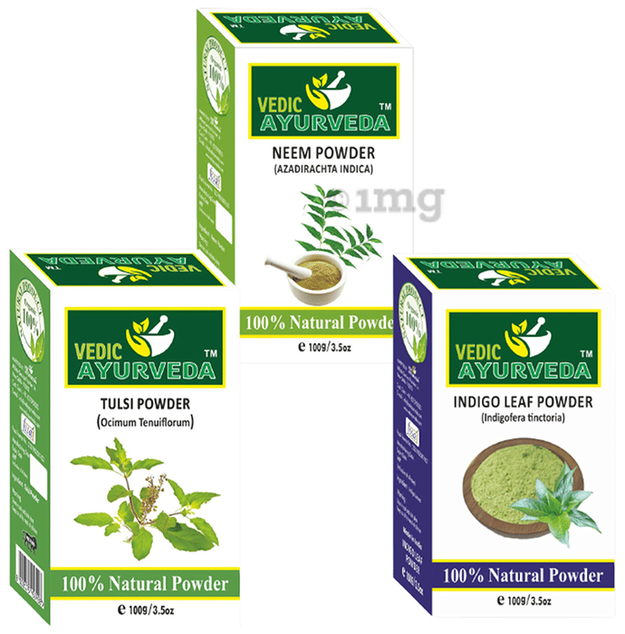 Vedic Ayurveda Combo Pack of Neem Powder, Tulsi Powder & Indigo Powder (100gm Each)