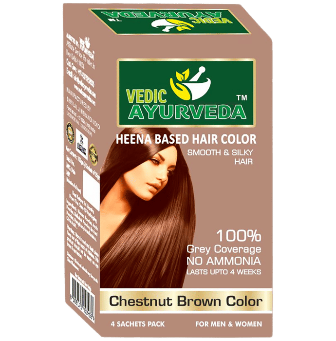 Vedic Ayurveda Heena Based Hair Chestnut Brown Color (25gm Each) for Men & Women