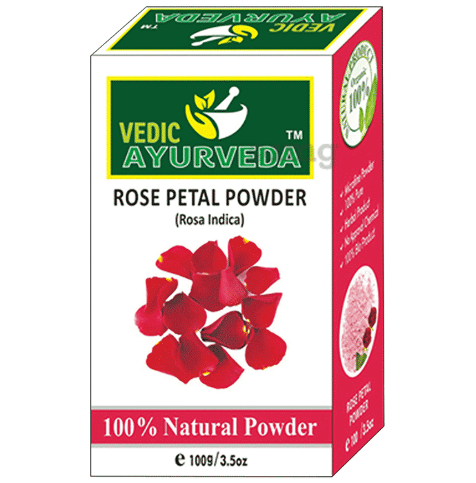 Vedic Ayurveda Rose PetaVedic Ayurveda Rose Petal Powder benefits skin tone and lightening by reducing dark spots. It helps exfoliate dead skin cells while enhancing skin texture and making it smooth, supple, and plump. It also contains antioxidants, which assist in slowing down the premature aging of skin cells and reduce fine lines and wrinkles.