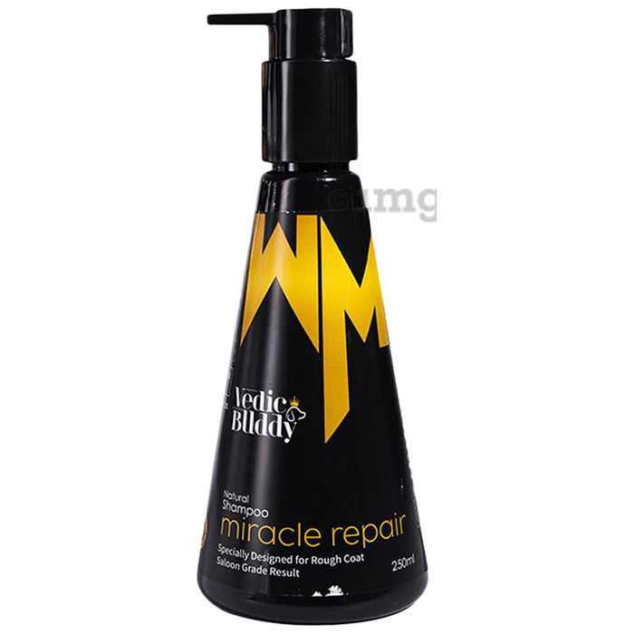 Vedic Buddy Miracle Repair Natural Dog Shampoo is specially formulated for rough coats, delivering salon-grade results. Crafted with a blend of natural ingredients, it provides a gentle, nourishing cleanse suitable for dogs with sensitive skin.