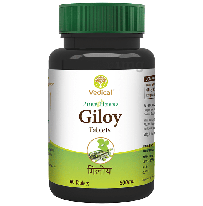 Vedical Giloy Tablet is employed in traditional Ayurvedic practice to help overcome the ill state of digestive functions. This compound is rich with aromatic and carminative herbs which reduce gaseousness, ease colic pain and correct constipation.