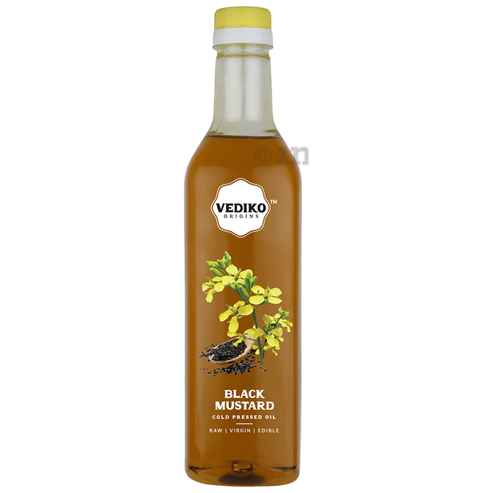 Vediko Origins Black Mustard Oil is a cold-pressed virgin edible oil made from organic black mustard seeds from farmers in Rajasthan and Haryana. It has a strong, pungent scent and is often used in traditional curry-based diets. The high concentration of monounsaturated and polyunsaturated fats may help maintain healthy cholesterol levels.