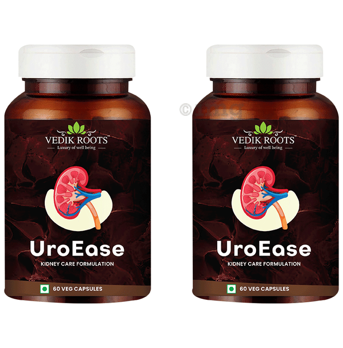Vedikroots UroEase Veg Capsule is a formulation made with a blend of botanical extracts. The product is designed to help manage symptoms associated with kidney function and urinary system health. It may also help maintain optimal levels of creatinine and uric acid.