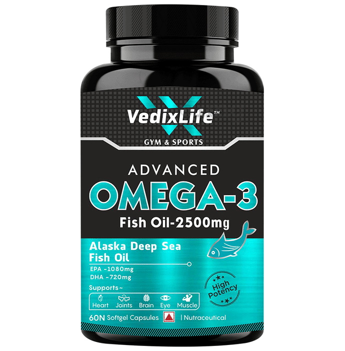 Information about VedixLife Gym & Sports Advanced Omega 3 Fish Oil 2500mg Softgel Capsule